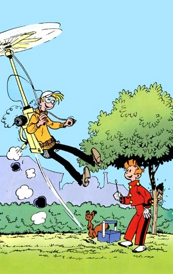 - Le Fantacoptère par Morvan et Munuera est légèrement différent de celui de Franquin. Certains câbles ont disparu tandis que d'autres ont fait leur apparition et le Fantacoptère dispose maintenant d'une double ceinture plus proche de ce que l'on peut trouve dans une voiture.