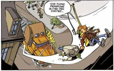 Spirou empêche l'homme de se faire écraser par le camion
